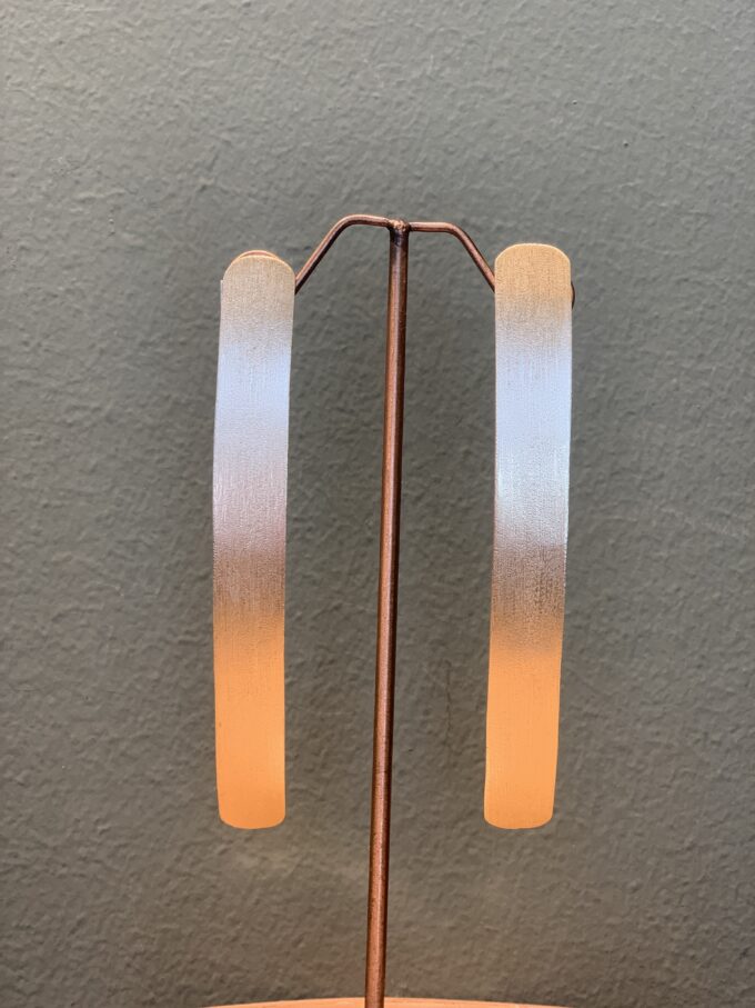 Orecchini lunghi in ottone anallergico e senza nikel galvanizzato in oro chiaro mat satinato.
