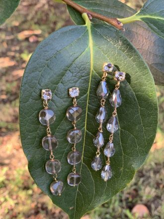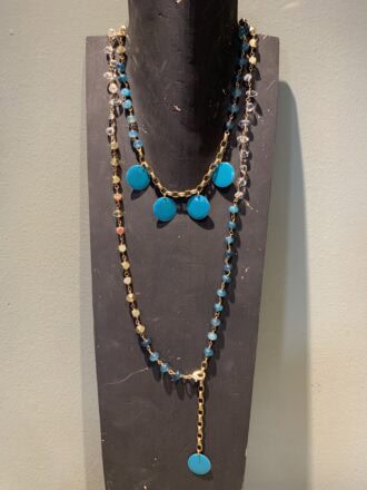 Collana lunghissima in ottone e rame, anallergica e senza nikel, con castoni a tema floreale in resina dipinti a mano.