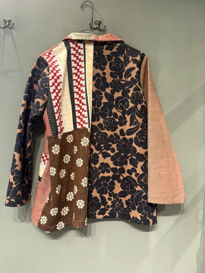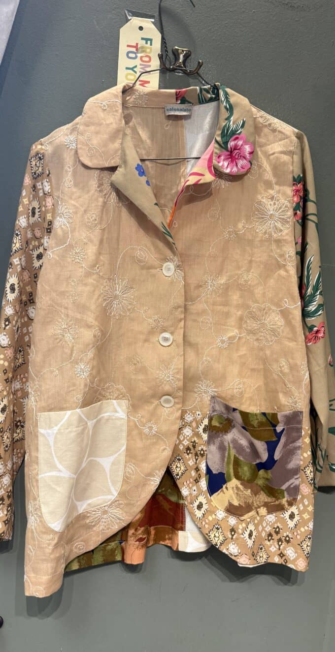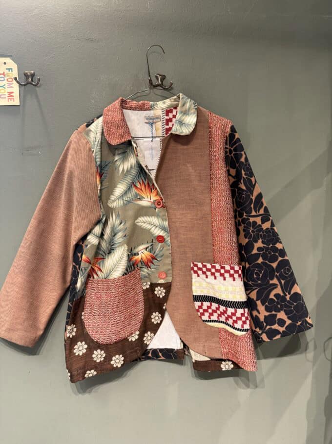 Giacche realizzate artigianalmente con diversi tessuti stampati e tinta unita,