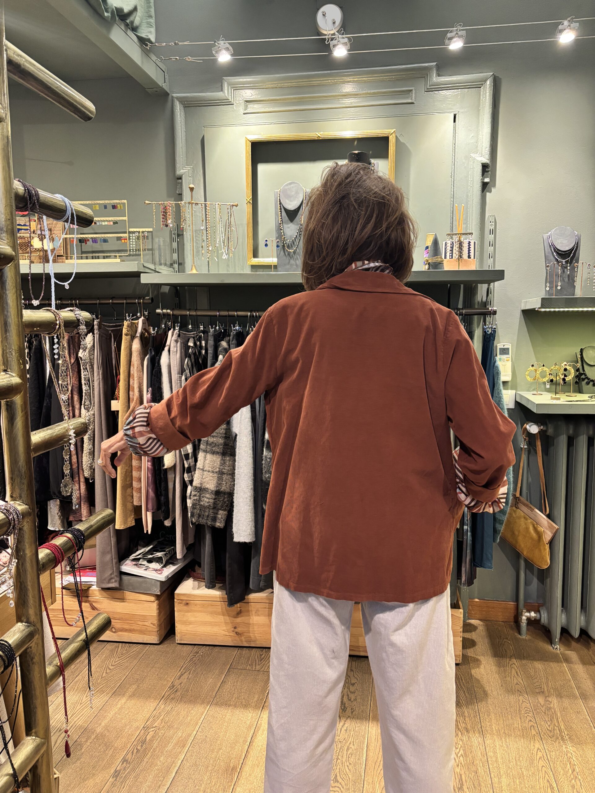 Blazer in velluto leggero 2000 righe con due bottoni e tasche applicate.