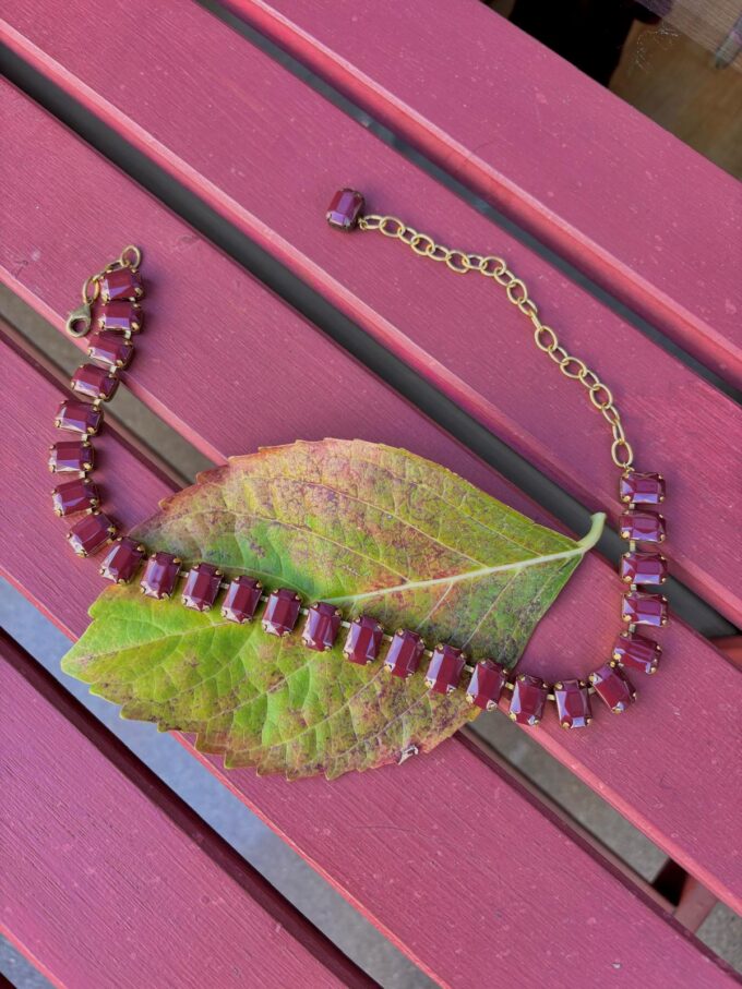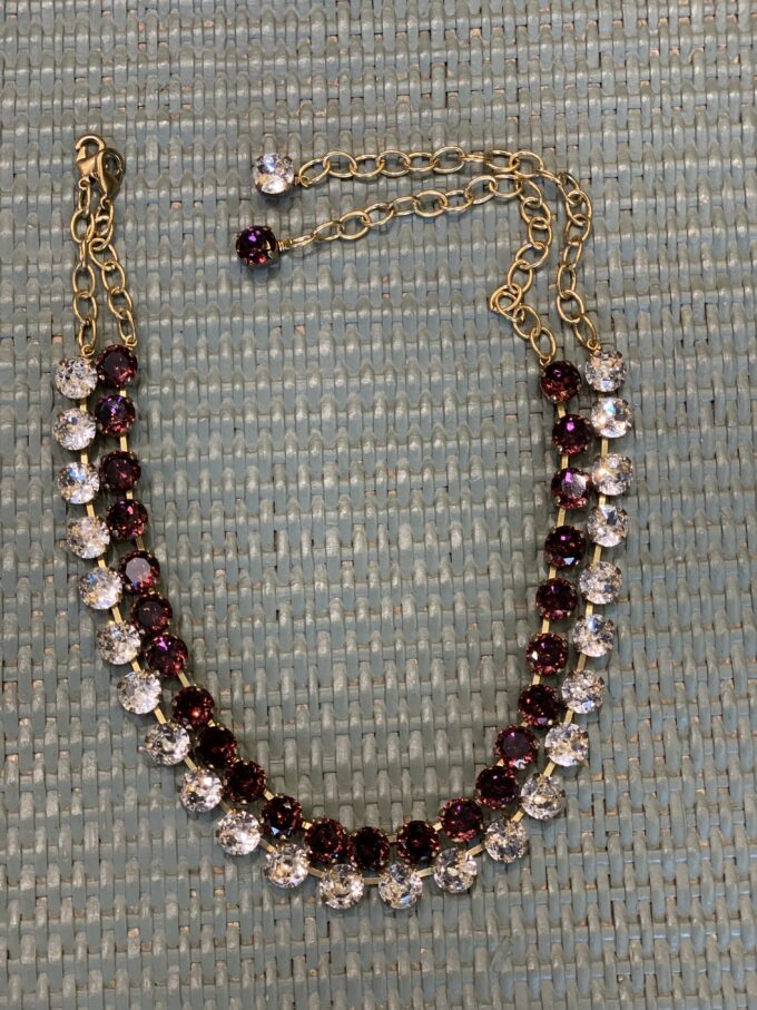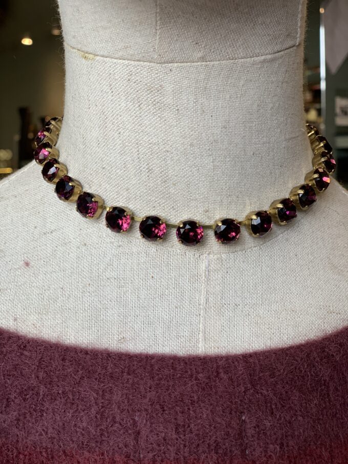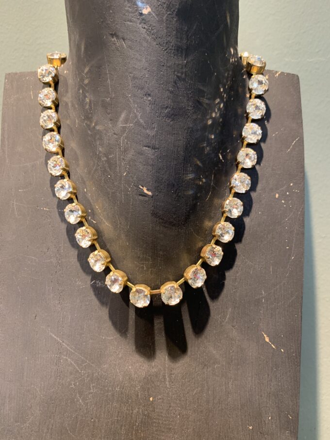 Collana girocollo regolabile con cristalli montati su base di ottone, anallergico e senza nikel.