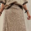 Gonna in pailettes con elastico coperto in vita .