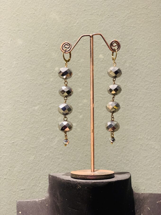 Orecchini in mezzo cristallo argento scuro con Monachella francese in ottone anallergico e senza nikel. Sono leggerissimi.