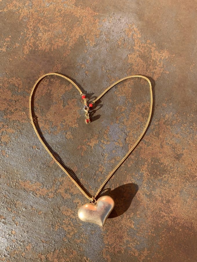 Collana girocollo con catena e cuore in ottone dorati. materiale anallergico e senza nikel.