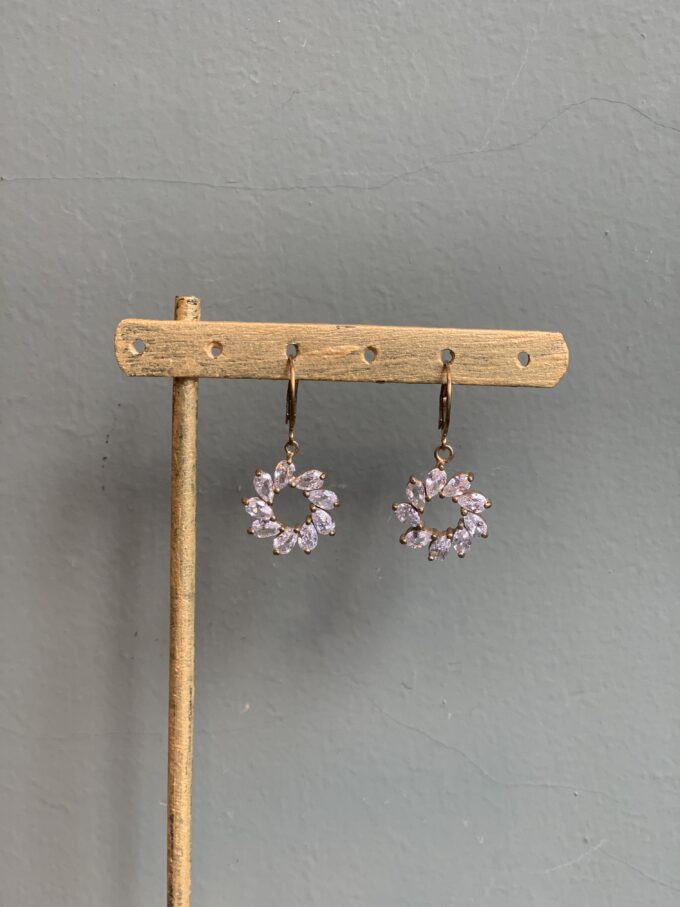 Orecchini con monachella francese in ottone, anallergico e senza nichel . Pendente con zirconi.