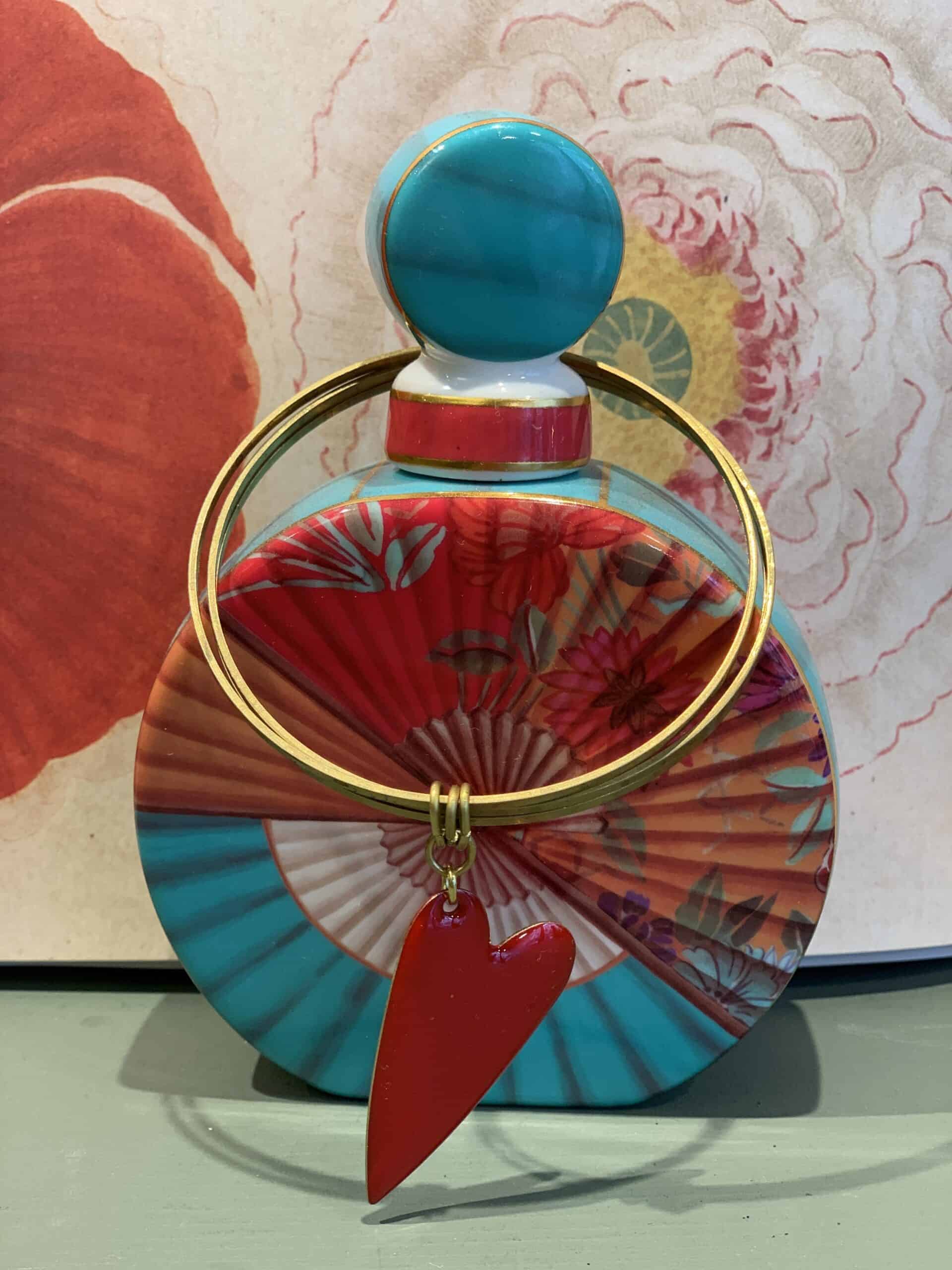 Bracciale  in ottone anallergico e senza nichel con tre cerchi e un  cuore smaltato.