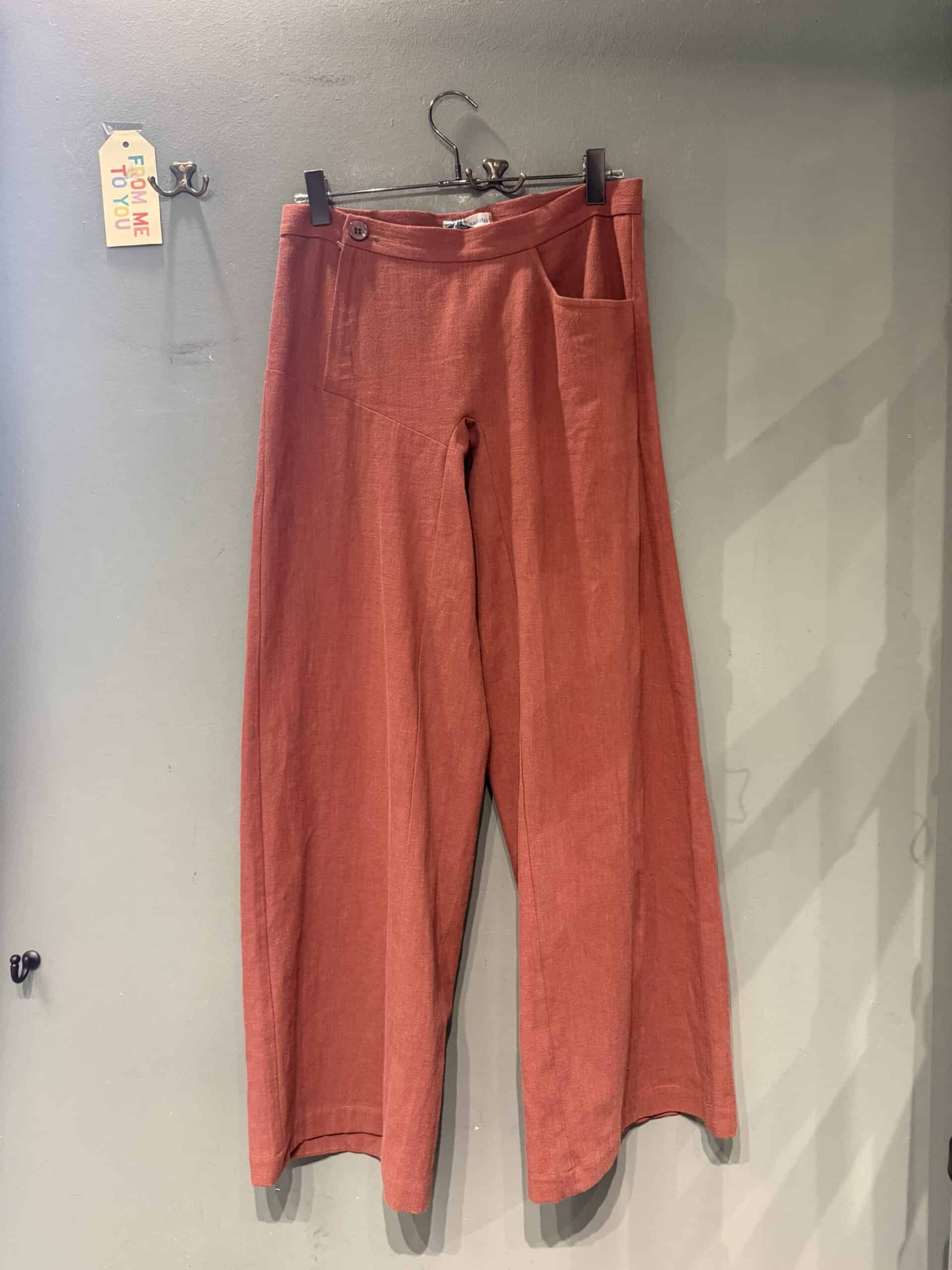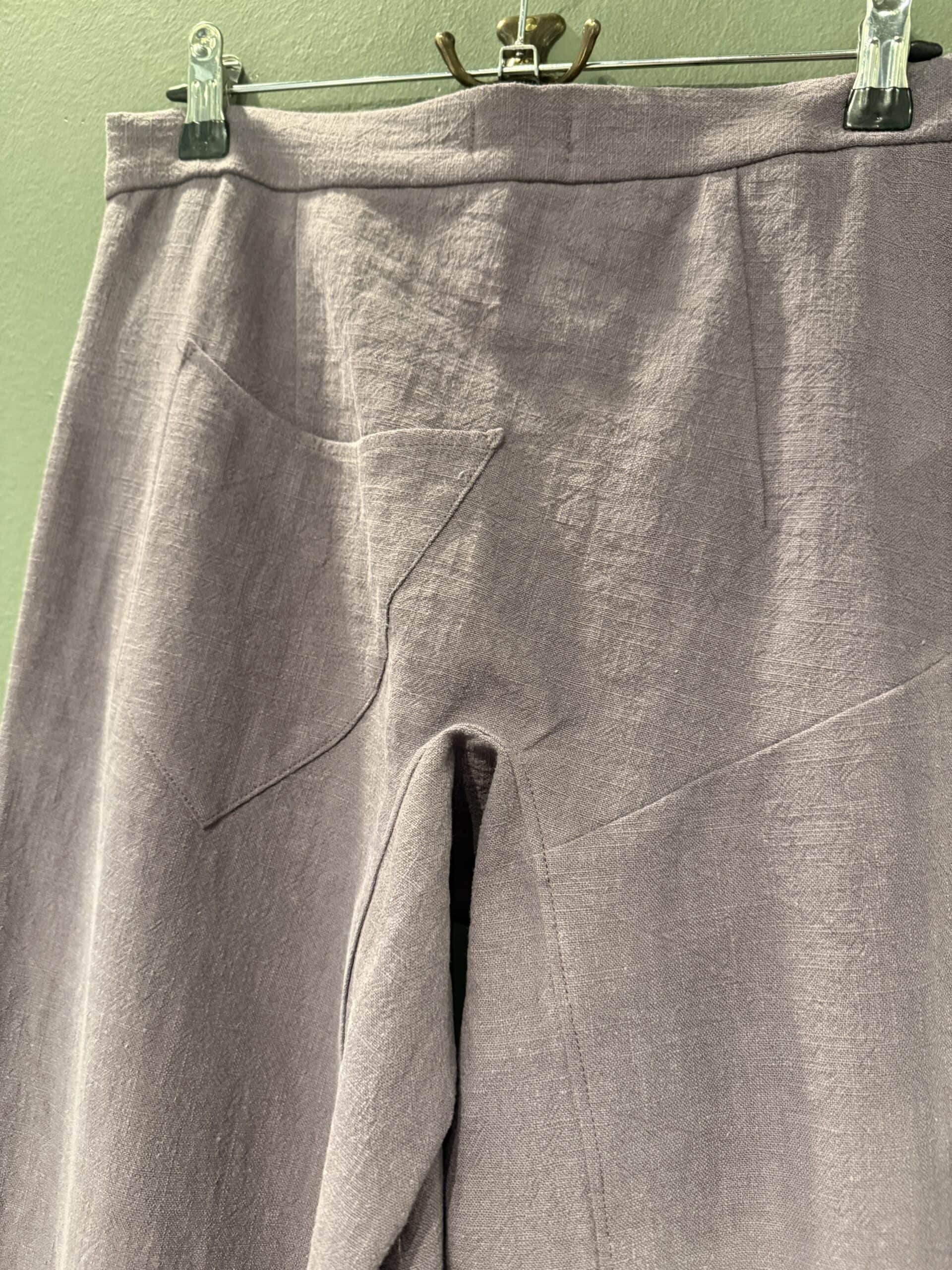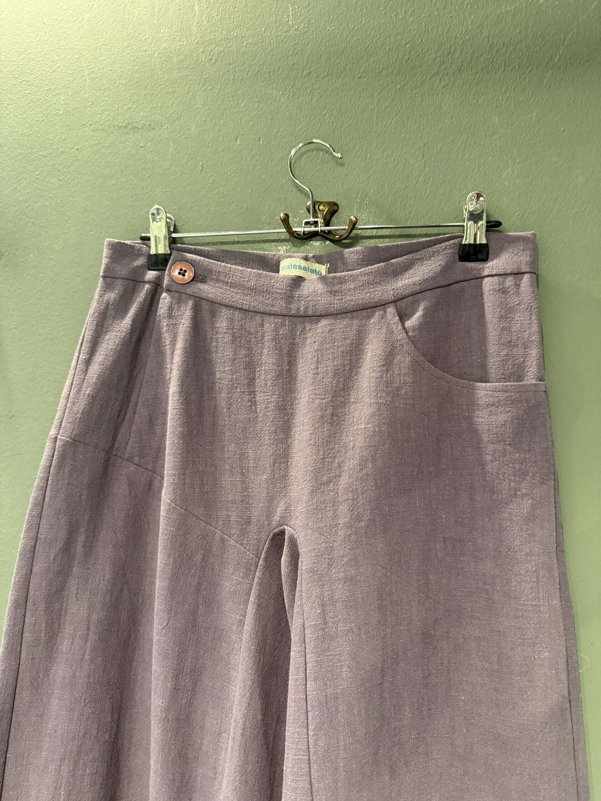 Pantalone realizzato artigianalmente , in puro lino, la cerniera è laterale ha una sola tasca davanti ed una tasca dietro .
