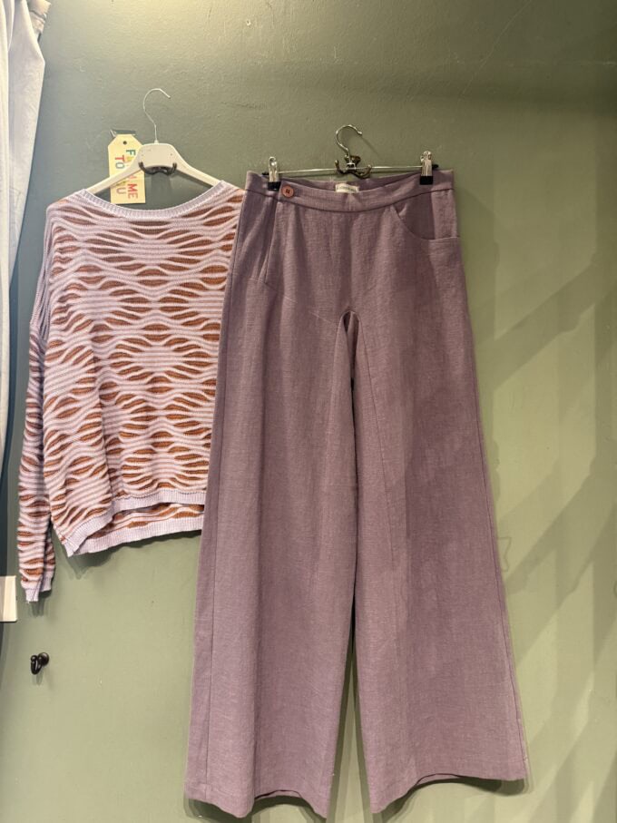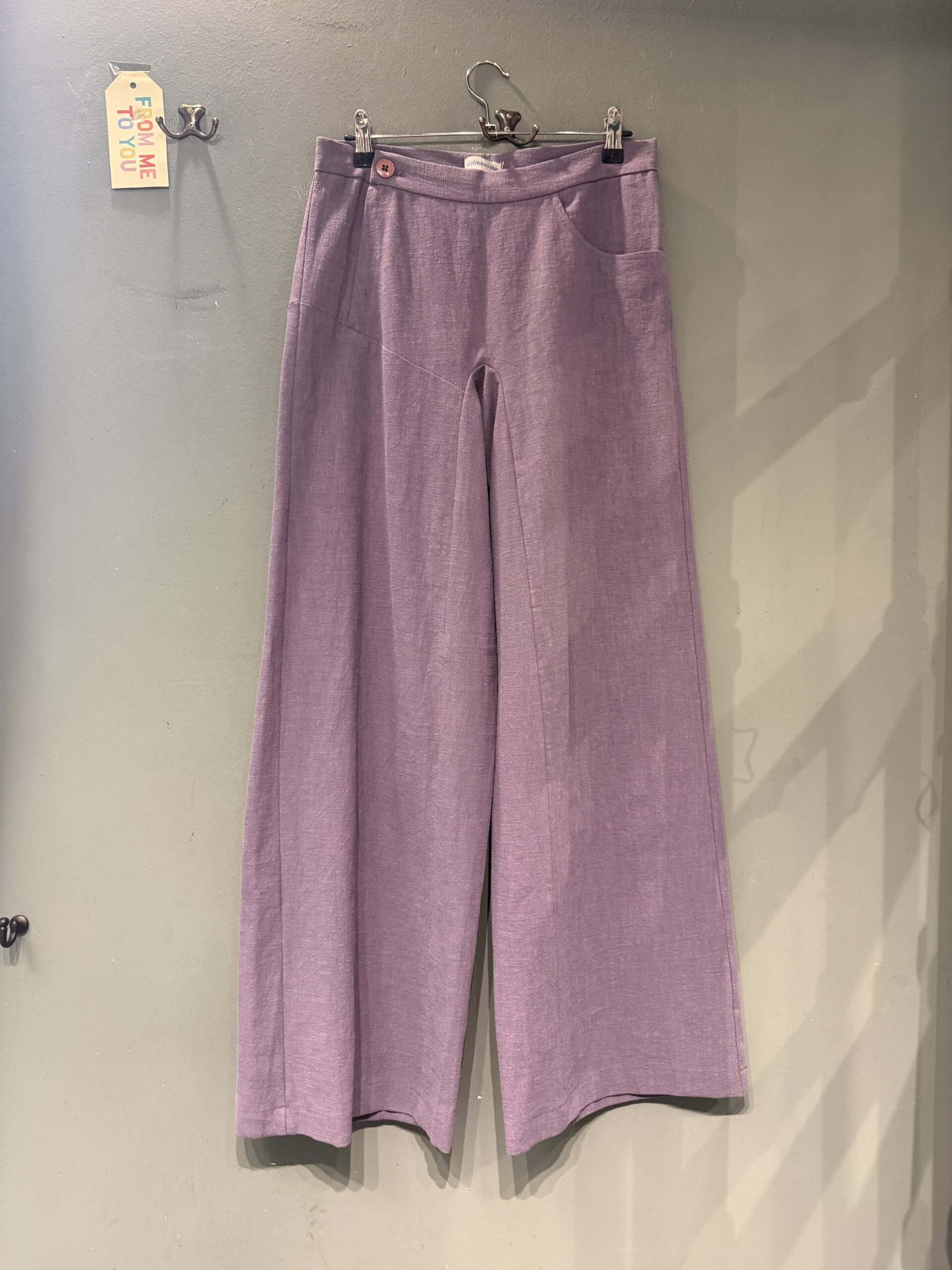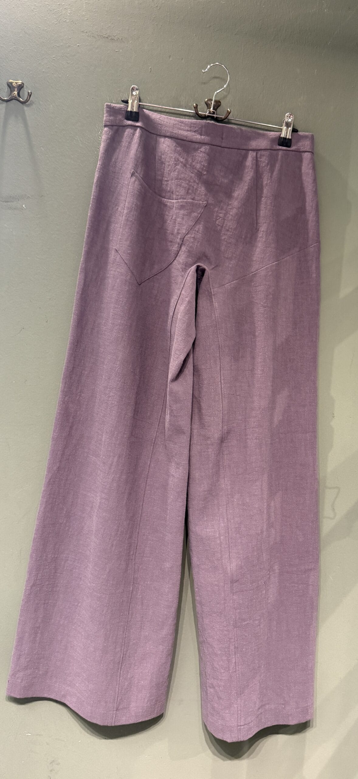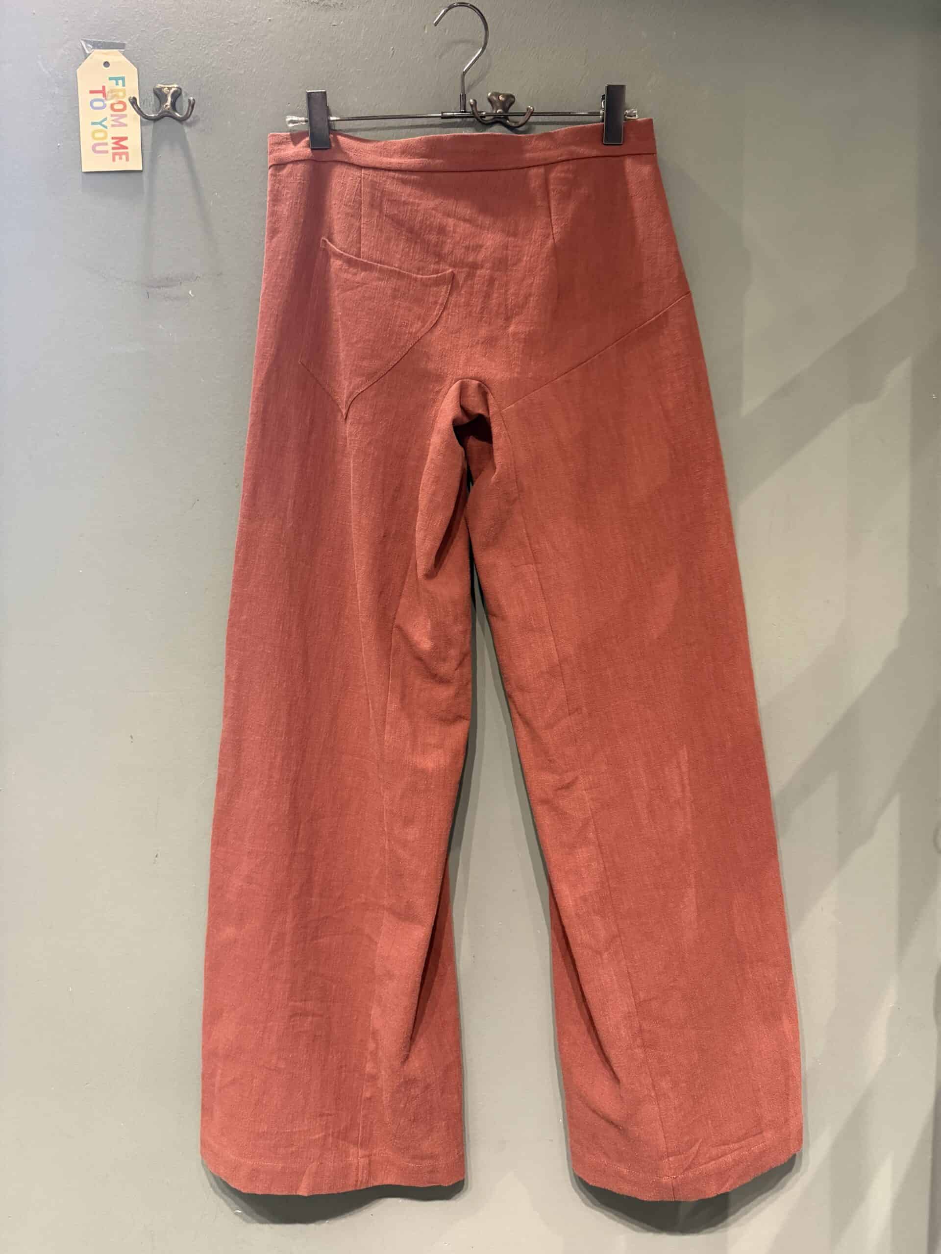 Pantalone realizzato artigianalmente , in puro lino, la cerniera è laterale ha una sola tasca davanti ed una tasca dietro .