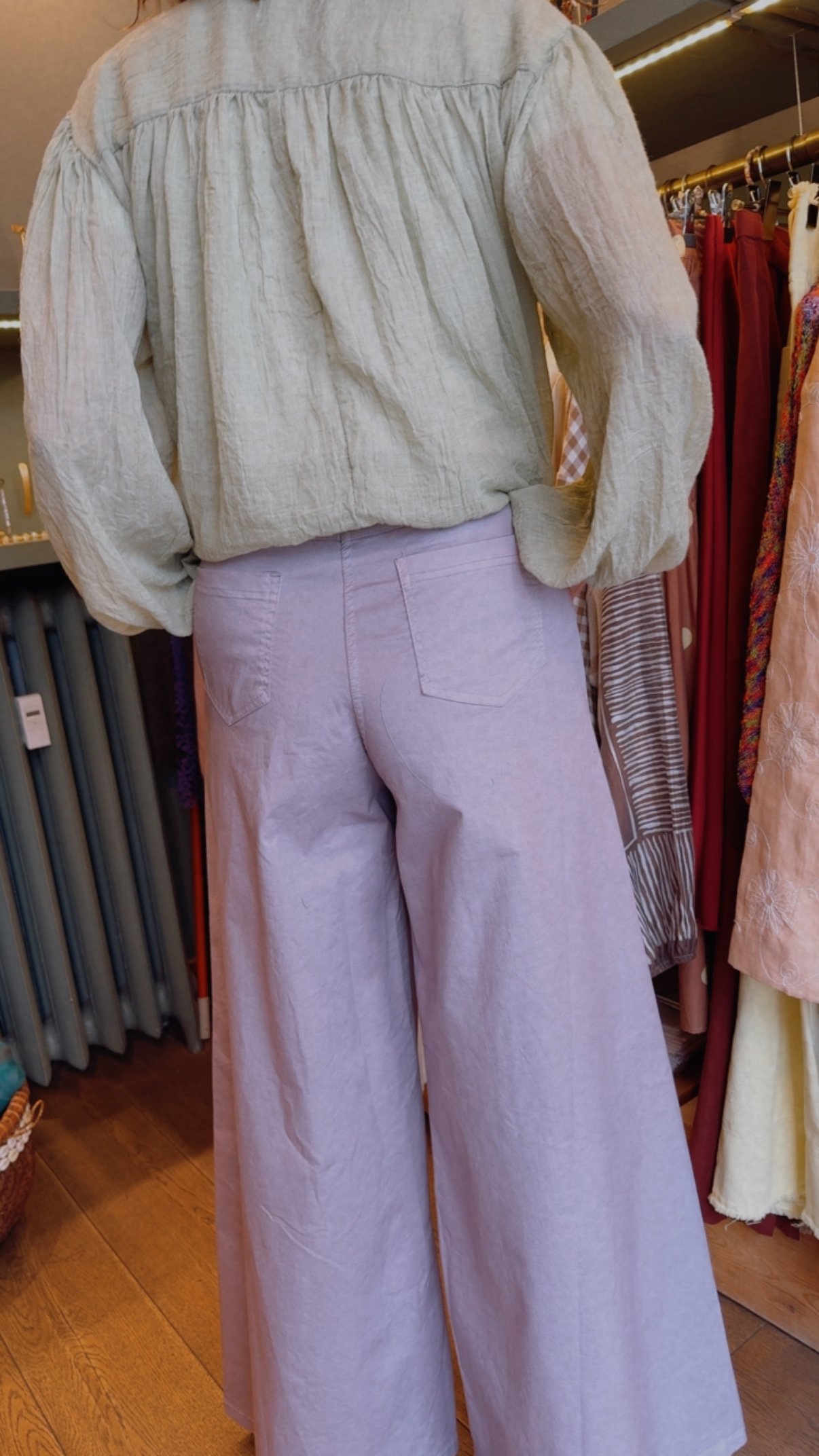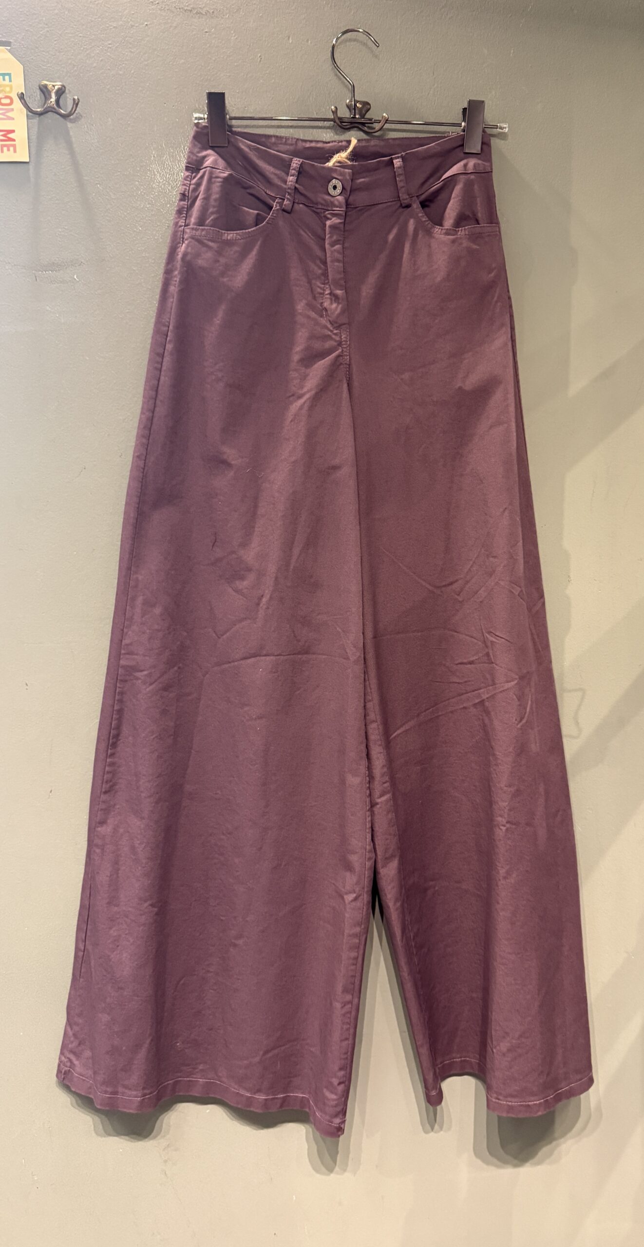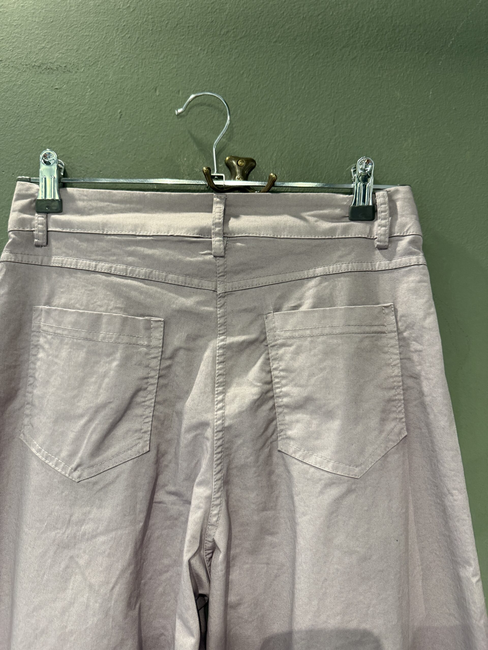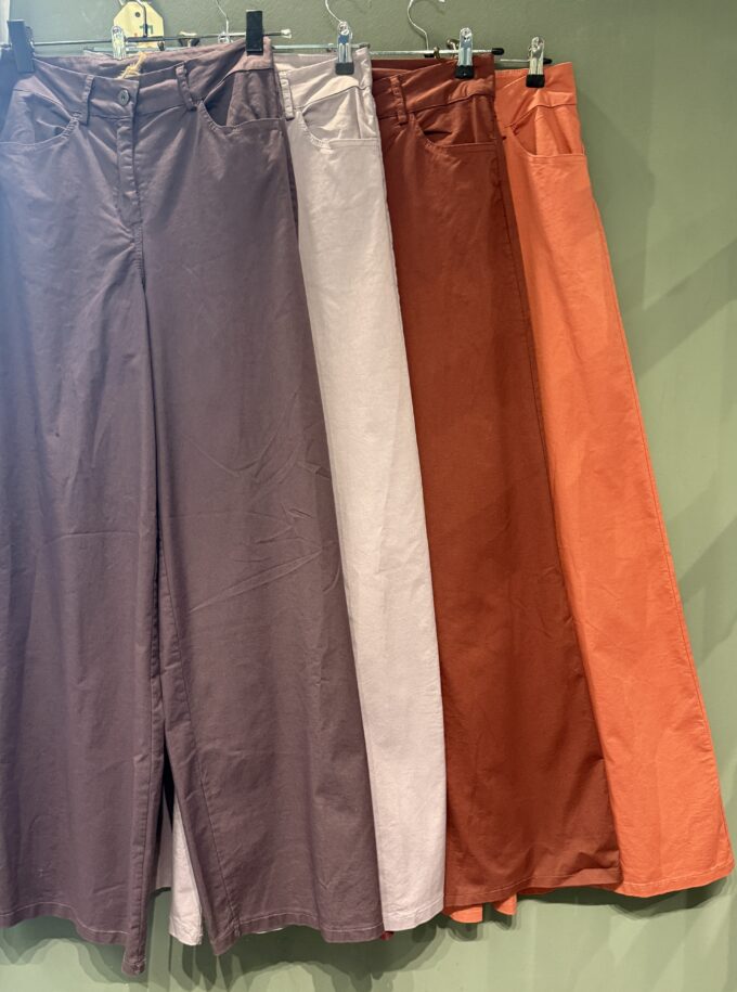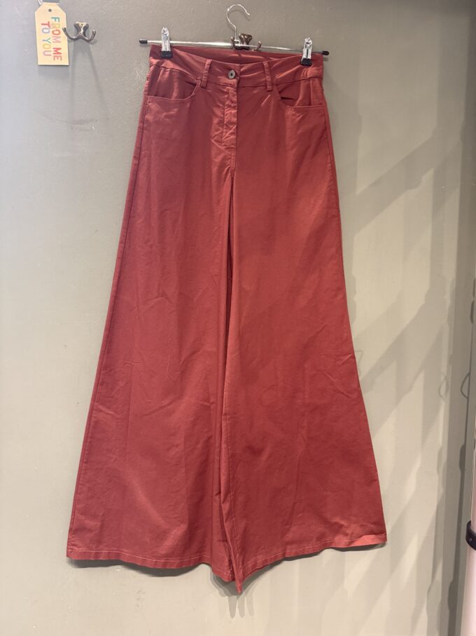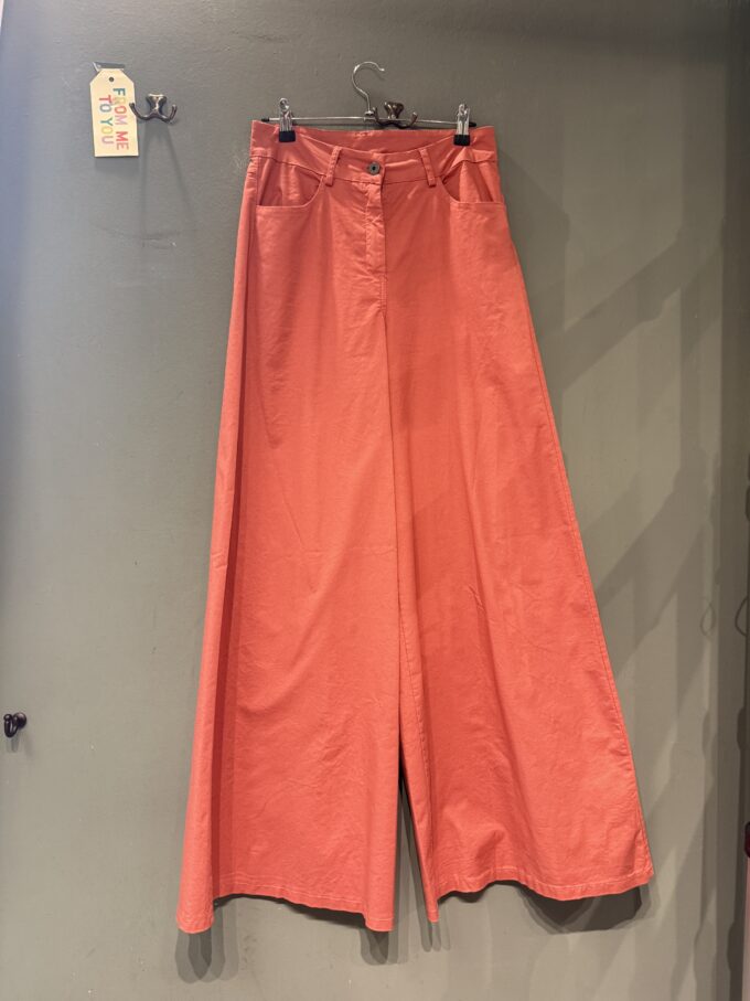 Pantaloni in cotone con 4 tasche ,gamba dritta si allarga sul fondo.