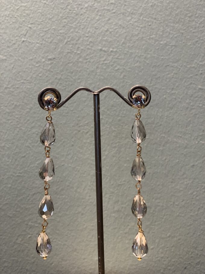 Orecchini lunghi con gocce in mezzo cristallo unite con nodo gioielliere.